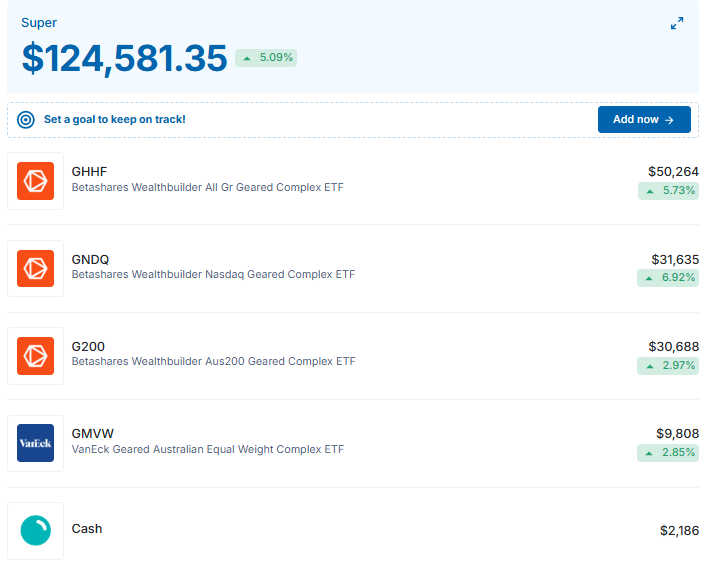 The main risk here is if Pearler Super shuts down for some reason (which seems incredibly unlikely, since they would’ve done this with a multi-decade horizon in mind). And as for geared ETFs, it’s possible I change my mind about these I guess, or the strategy itself doesn’t work out as planned. So yes, both of those are risks. And then there’s the idea of the funds shutting down, which also seems remote to me given they aren’t ultra niche options – they’re popular indexes with a bit of leverage. So I think it’s reasonable to expect them to be popular over time (GHHF is well over $100m already for example).